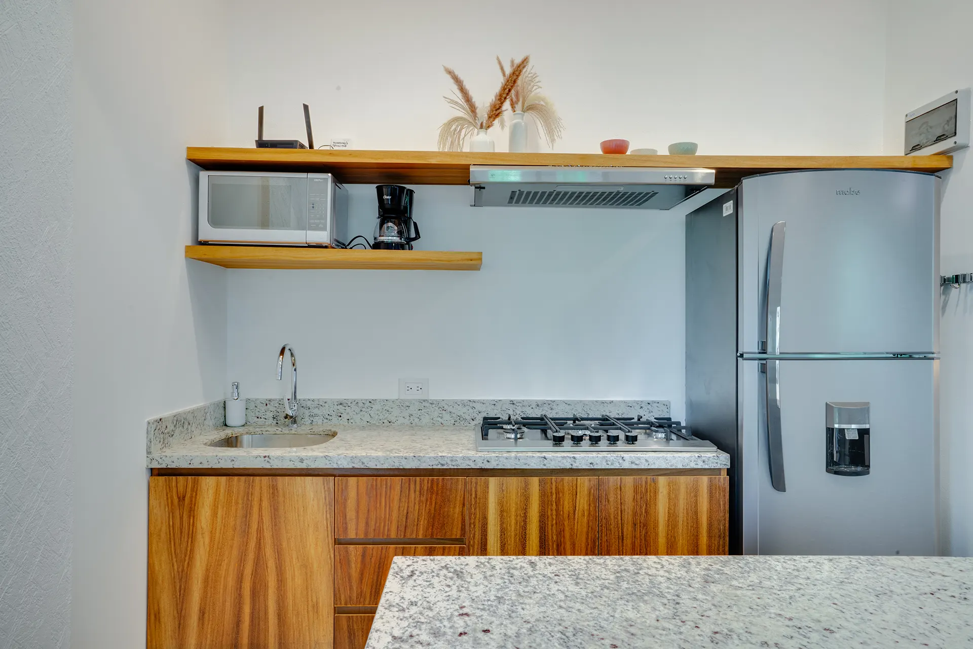 Ideal for couples or solo travelers, this stylish 52m² studio offers comfort, privacy, and a connection to nature. Wake up to the sounds of the jungle and enjoy your morning coffee on the private balcony. Inside, you’ll find modern amenities, a queen-size bed, and thoughtful details to make your stay relaxing and memorable.